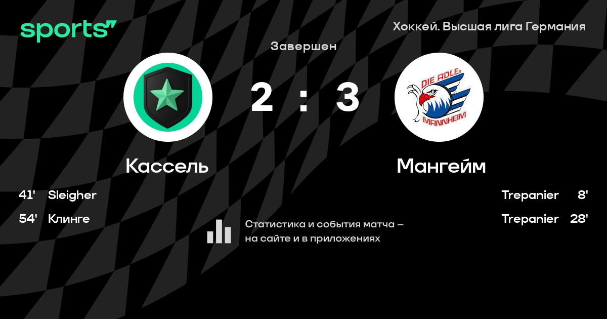 В прошедшем матче в рамках турнира Хоккей. Высшая лига Германия состоялась встреча команд Кассель - Мангейм