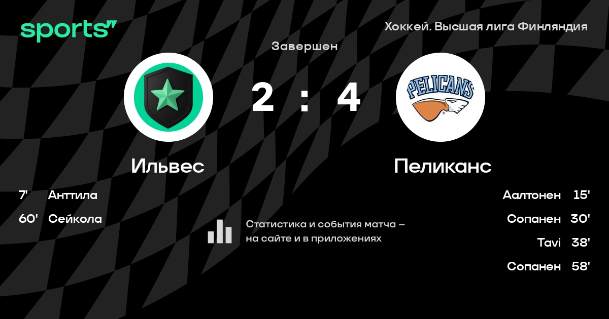 В прошедшем матче в рамках турнира Хоккей. Высшая лига Финляндия состоялась встреча команд Ильвес - Пеликанс