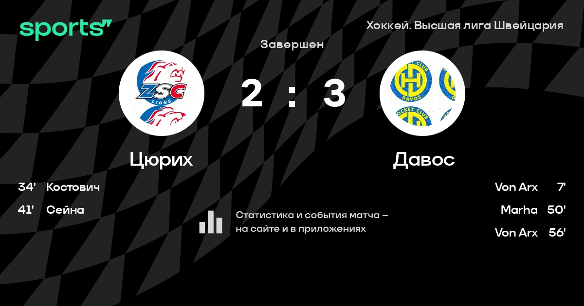 В прошедшем матче в рамках турнира Хоккей. Высшая лига Швейцария состоялась встреча команд Цюрих - Давос