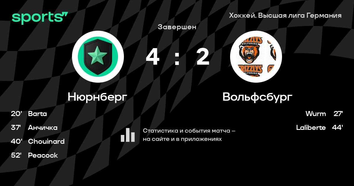 В прошедшем матче в рамках турнира Хоккей. Высшая лига Германия состоялась встреча команд Нюрнберг - Вольфсбург