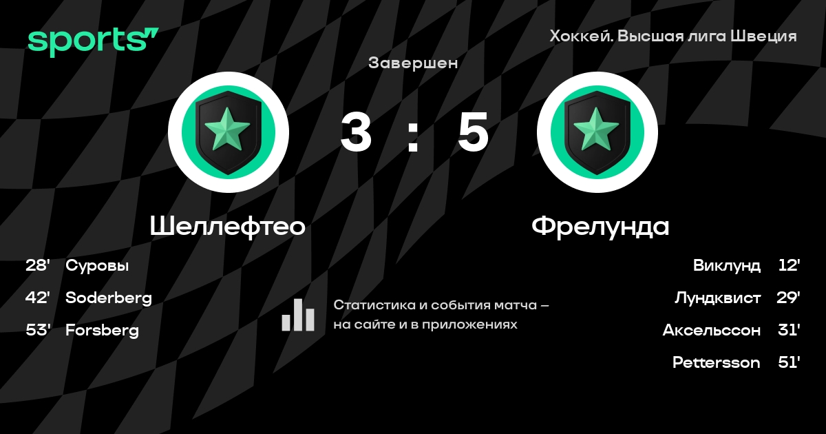 В прошедшем матче в рамках турнира Хоккей. Высшая лига Швеция состоялась встреча команд Шеллефтео - Фрелунда