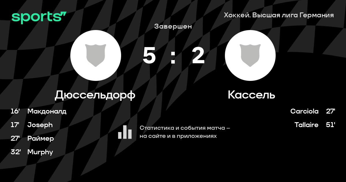 В прошедшем матче в рамках турнира Хоккей. Высшая лига Германия состоялась встреча команд Дюссельдорф - Кассель