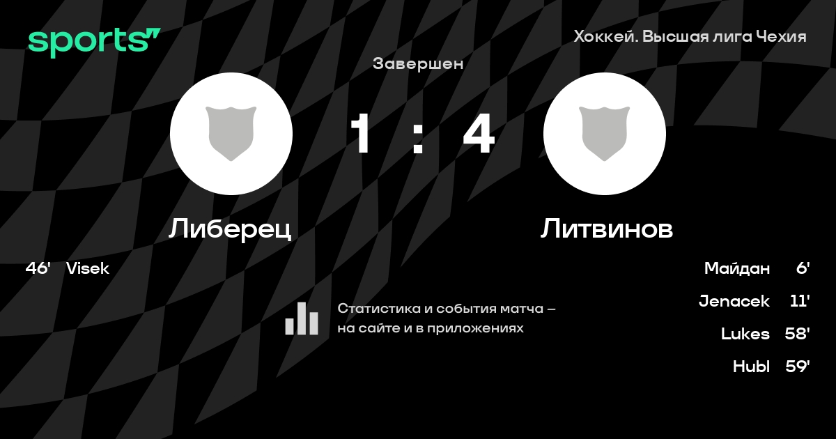 В прошедшем матче в рамках турнира Хоккей. Высшая лига Чехия состоялась встреча команд Либерец - Литвинов