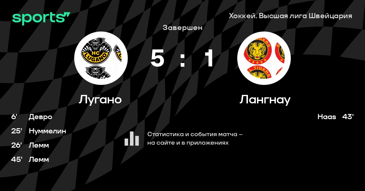 В прошедшем матче в рамках турнира Хоккей. Высшая лига Швейцария состоялась встреча команд Лугано - Лангнау