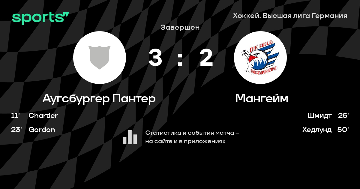 В прошедшем матче в рамках турнира Хоккей. Высшая лига Германия состоялась встреча команд Аугсбургер Пантер - Мангейм