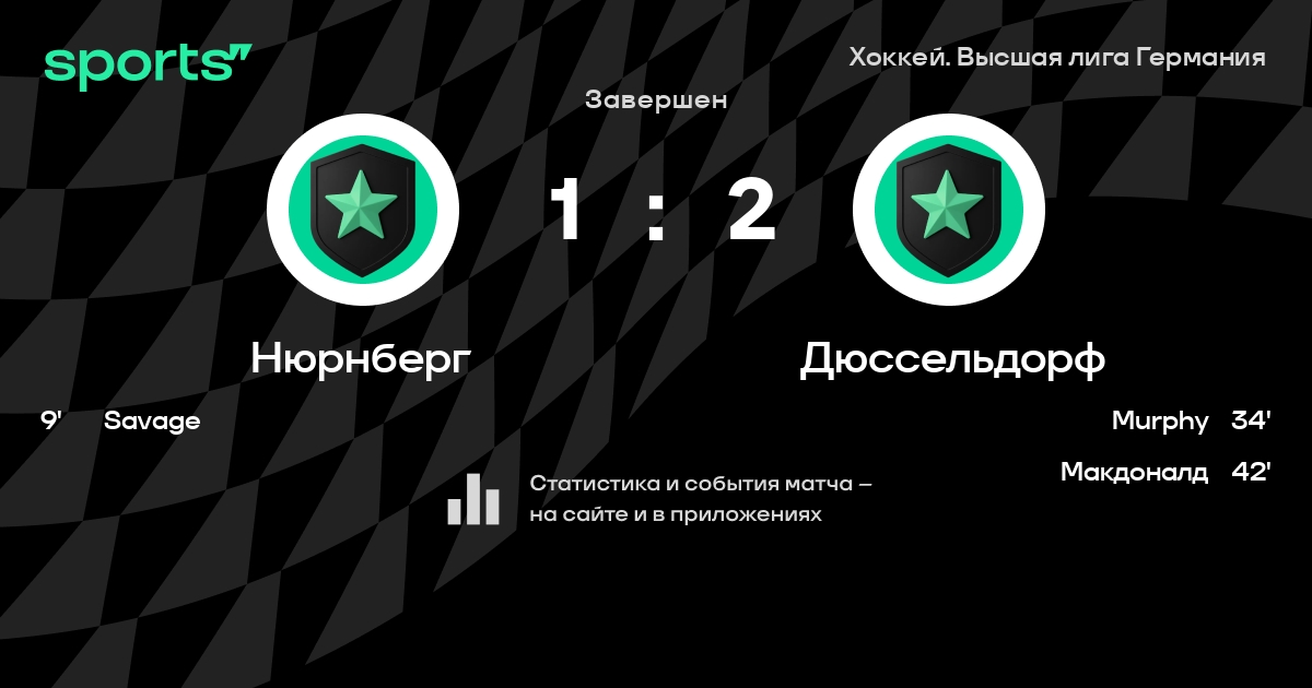 В прошедшем матче в рамках турнира Хоккей. Высшая лига Германия состоялась встреча команд Нюрнберг - Дюссельдорф