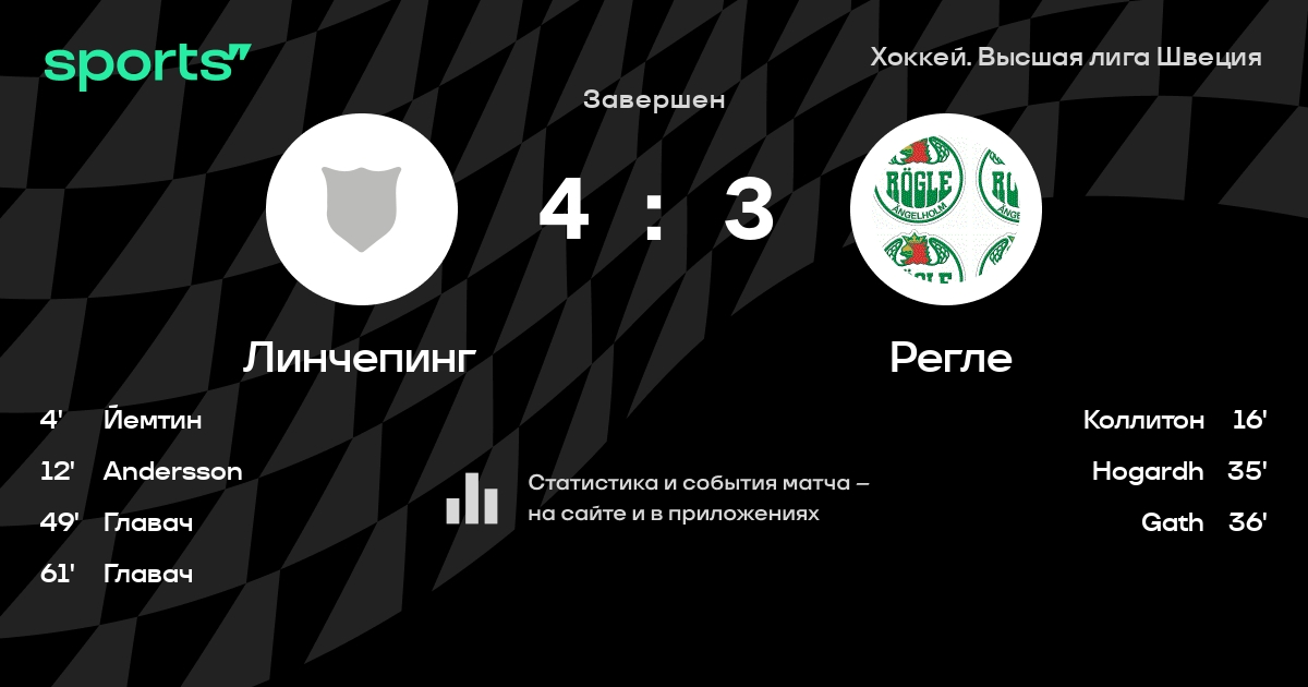 В прошедшем матче в рамках турнира Хоккей. Высшая лига Швеция состоялась встреча команд Линчепинг - Регле