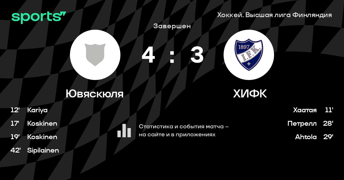 В прошедшем матче в рамках турнира Хоккей. Высшая лига Финляндия состоялась встреча команд Ювяскюля - ХИФК
