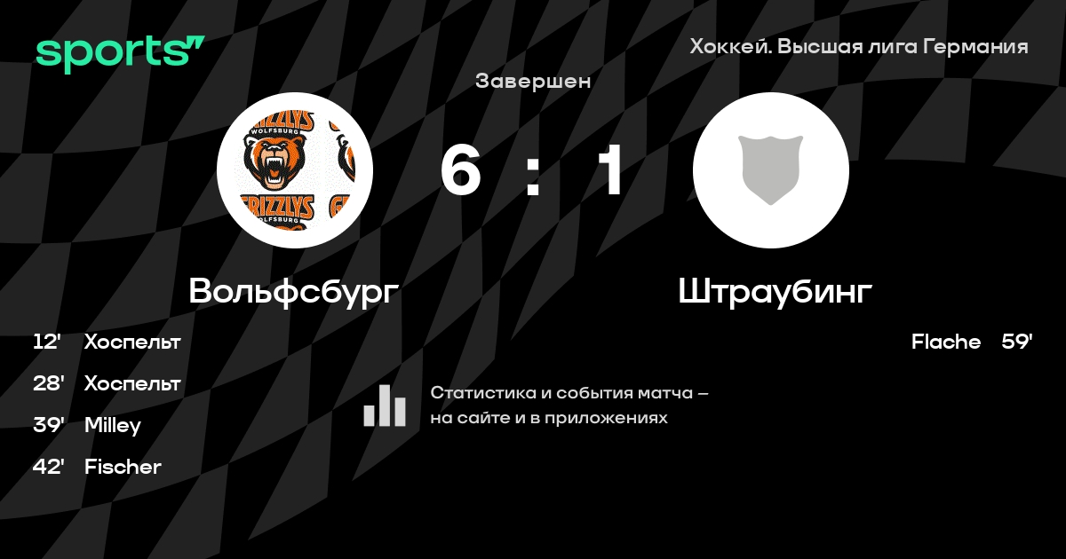 В прошедшем матче в рамках турнира Хоккей. Высшая лига Германия состоялась встреча команд Вольфсбург - Штраубинг