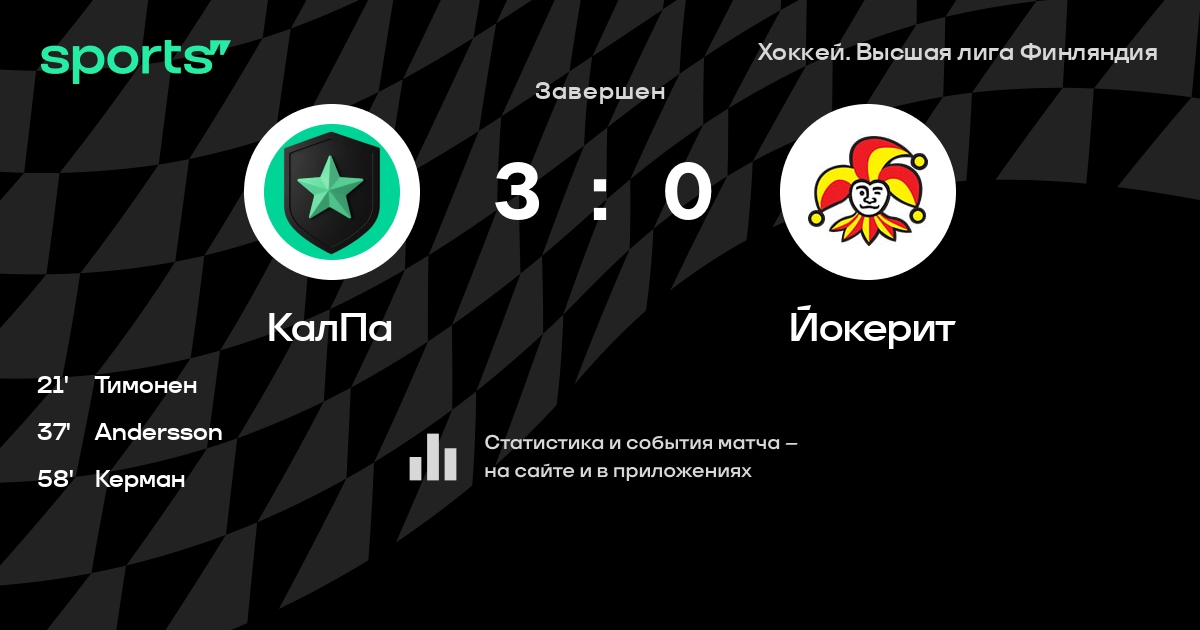 В прошедшем матче в рамках турнира Хоккей. Высшая лига Финляндия состоялась встреча команд КалПа - Йокерит