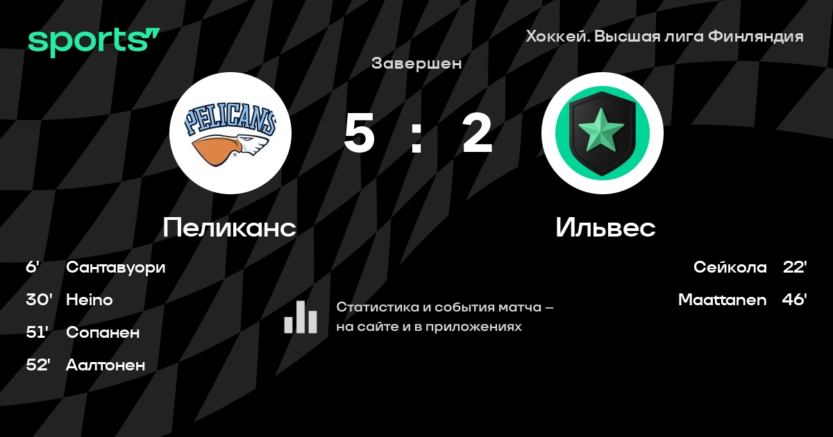 В прошедшем матче в рамках турнира Хоккей. Высшая лига Финляндия состоялась встреча команд Пеликанс - Ильвес