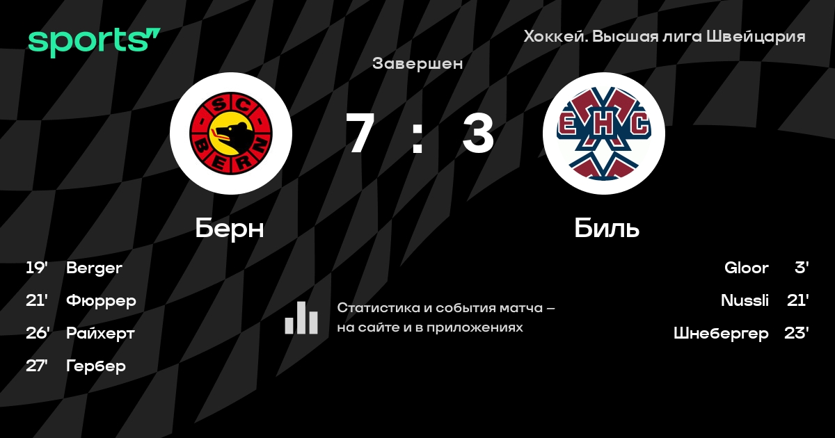 В прошедшем матче в рамках турнира Хоккей. Высшая лига Швейцария состоялась встреча команд Берн - Биль