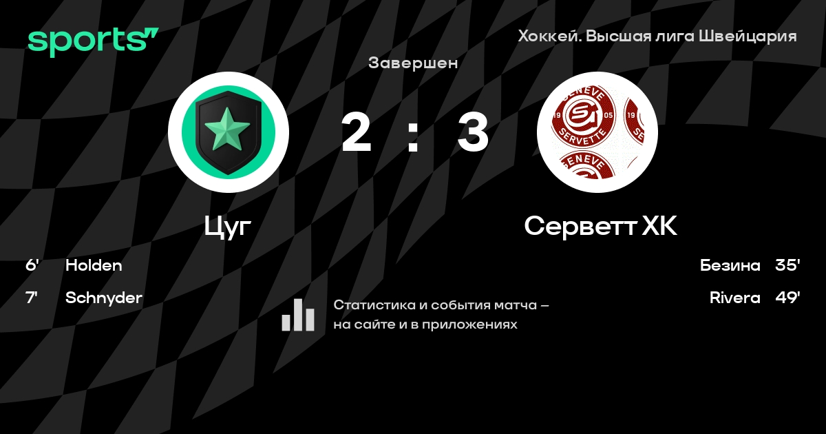 В прошедшем матче в рамках турнира Хоккей. Высшая лига Швейцария состоялась встреча команд Цуг - Серветт ХК
