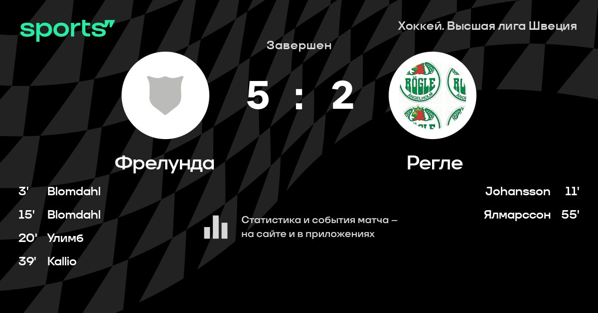 В прошедшем матче в рамках турнира Хоккей. Высшая лига Швеция состоялась встреча команд Фрелунда - Регле