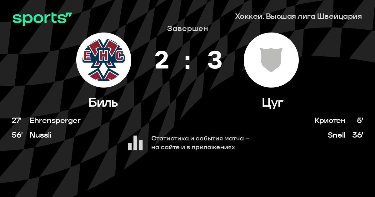 В прошедшем матче в рамках турнира Хоккей. Высшая лига Швейцария состоялась встреча команд Биль - Цуг