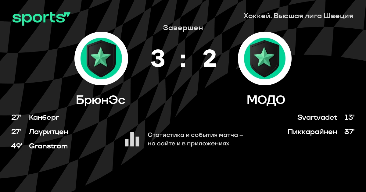 В прошедшем матче в рамках турнира Хоккей. Высшая лига Швеция состоялась встреча команд БрюнЭс - МОДО
