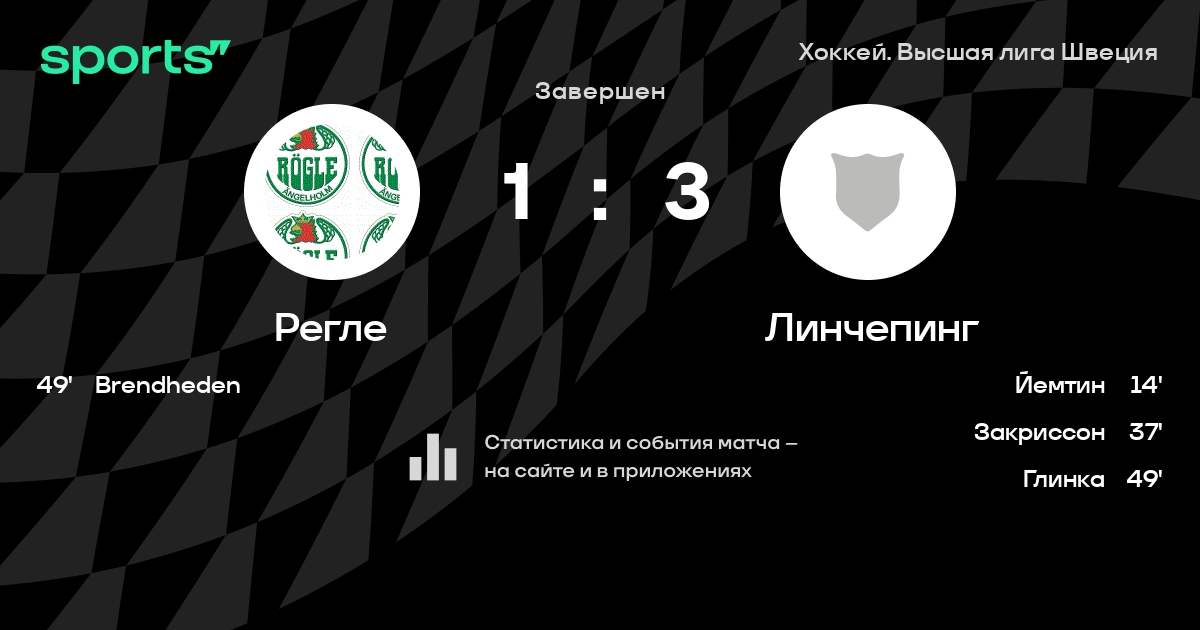 В прошедшем матче в рамках турнира Хоккей. Высшая лига Швеция состоялась встреча команд Регле - Линчепинг