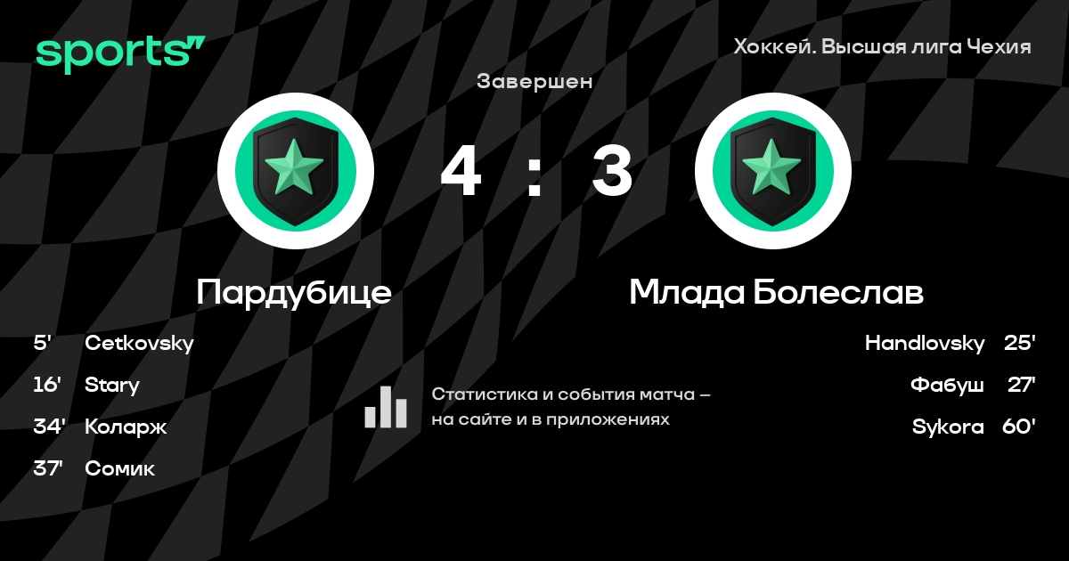 В прошедшем матче в рамках турнира Хоккей. Высшая лига Чехия состоялась встреча команд Пардубице - Млада Болеслав
