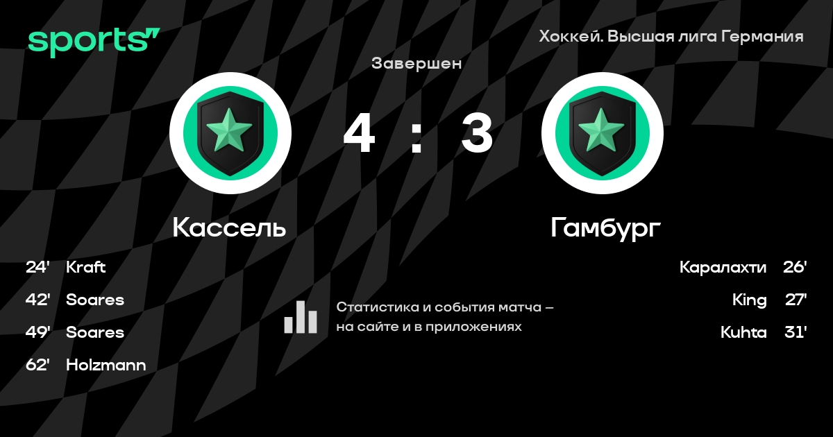 В прошедшем матче в рамках турнира Хоккей. Высшая лига Германия состоялась встреча команд Кассель - Гамбург
