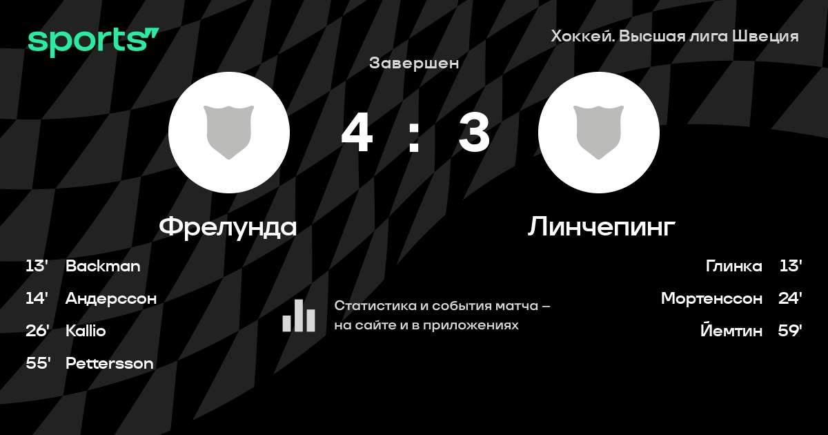 В прошедшем матче в рамках турнира Хоккей. Высшая лига Швеция состоялась встреча команд Фрелунда - Линчепинг