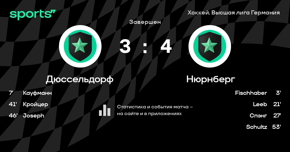 В прошедшем матче в рамках турнира Хоккей. Высшая лига Германия состоялась встреча команд Дюссельдорф - Нюрнберг