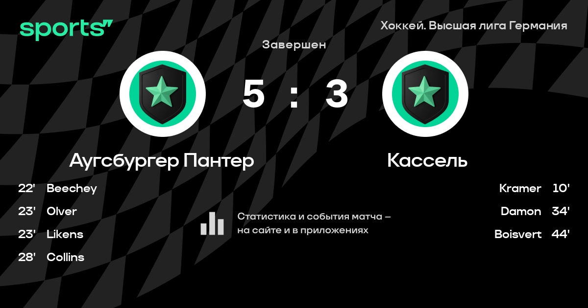 В прошедшем матче в рамках турнира Хоккей. Высшая лига Германия состоялась встреча команд Аугсбургер Пантер - Кассель