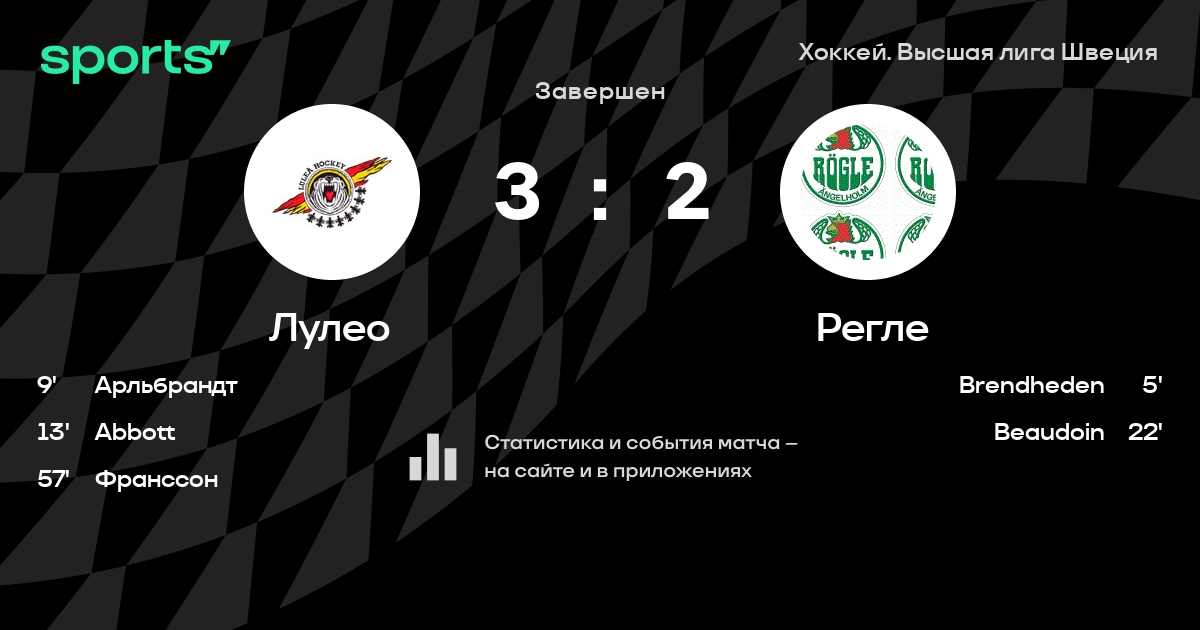 В прошедшем матче в рамках турнира Хоккей. Высшая лига Швеция состоялась встреча команд Лулео - Регле