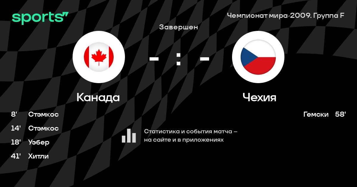 В прошедшем матче в рамках турнира Чемпионат мира-2009. Группа F состоялась встреча команд Канада - Чехия
