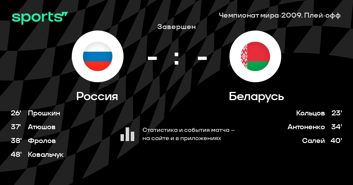 В прошедшем матче в рамках турнира Чемпионат мира-2009. Плей-офф состоялась встреча команд Россия - Беларусь