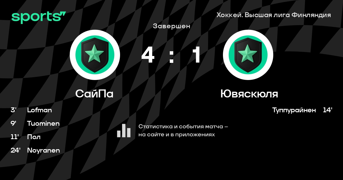В прошедшем матче в рамках турнира Хоккей. Высшая лига Финляндия состоялась встреча команд СайПа - Ювяскюля