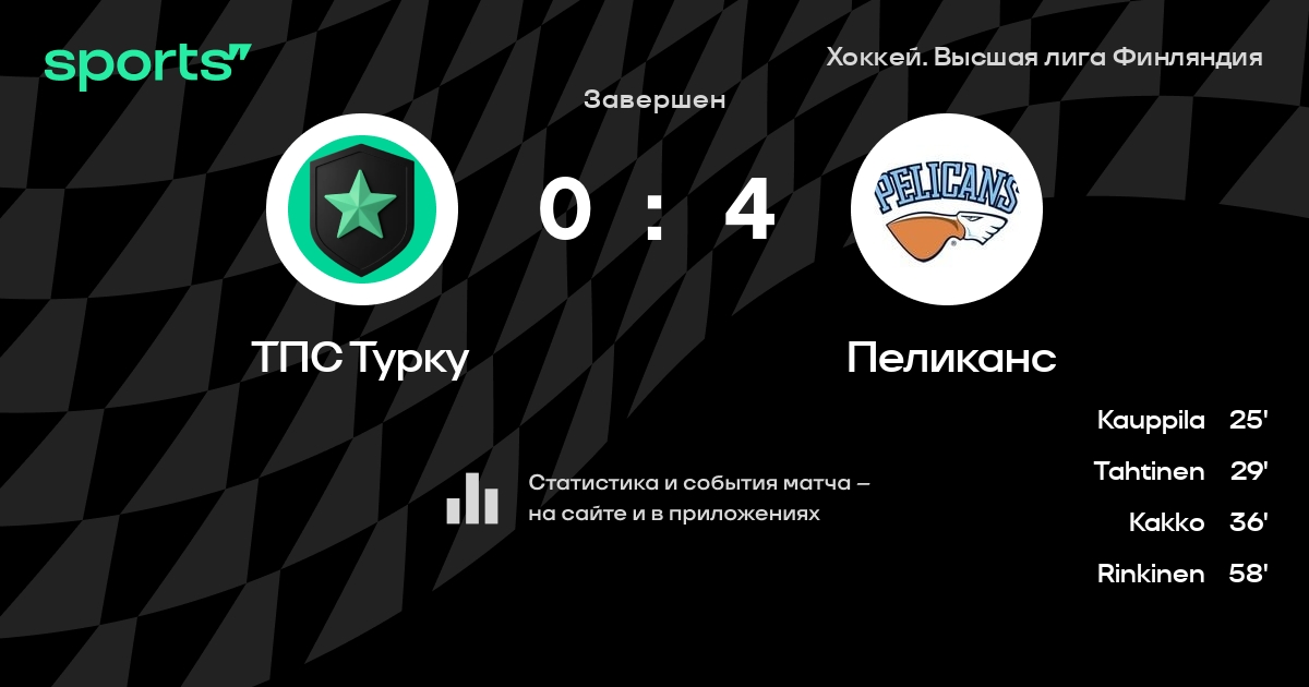 В прошедшем матче в рамках турнира Хоккей. Высшая лига Финляндия состоялась встреча команд ТПС Турку - Пеликанс