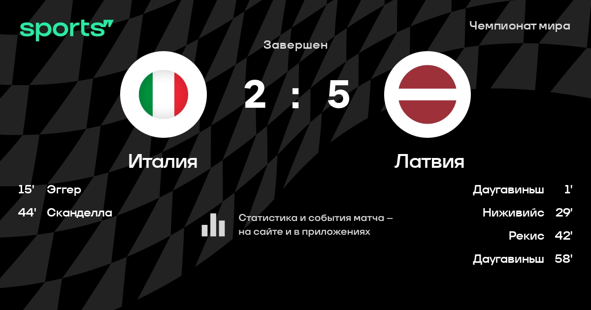 В прошедшем матче в рамках турнира Чемпионат мира (Предварительный этап) состоялась встреча команд Италия - Латвия в городе Мангейм (Германия) на стадионе САП-Арена (вместимость - 15000)