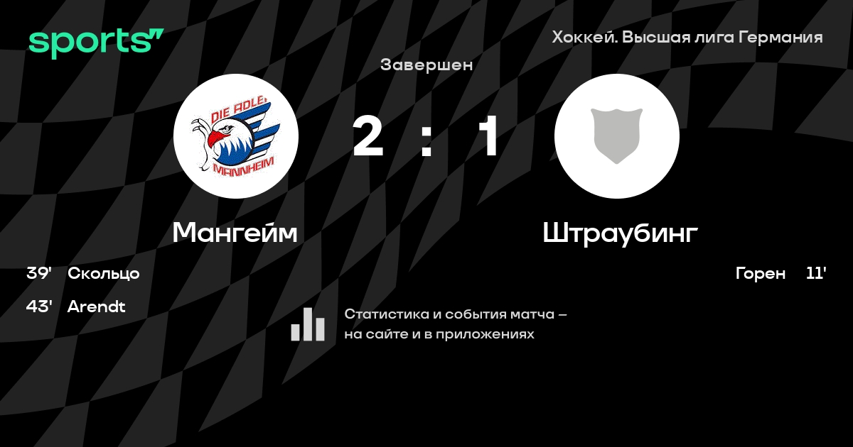 В прошедшем матче в рамках турнира Хоккей. Высшая лига Германия состоялась встреча команд Мангейм - Штраубинг