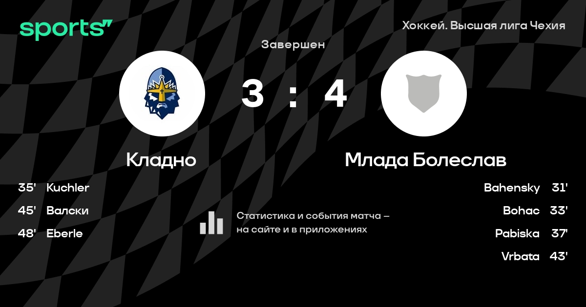 В прошедшем матче в рамках турнира Хоккей. Высшая лига Чехия состоялась встреча команд Кладно - Млада Болеслав
