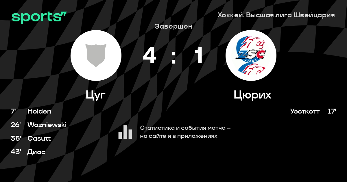 В прошедшем матче в рамках турнира Хоккей. Высшая лига Швейцария состоялась встреча команд Цуг - Цюрих