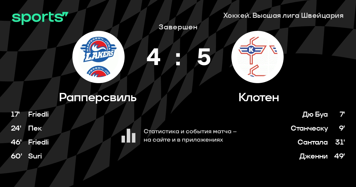 В прошедшем матче в рамках турнира Хоккей. Высшая лига Швейцария состоялась встреча команд Рапперсвиль - Клотен
