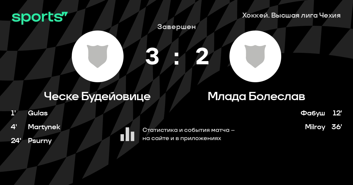 В прошедшем матче в рамках турнира Хоккей. Высшая лига Чехия состоялась встреча команд Ческе Будейовице - Млада Болеслав