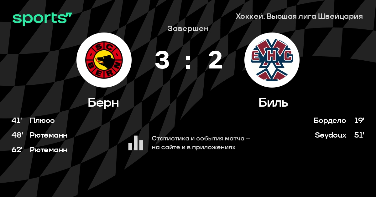 В прошедшем матче в рамках турнира Хоккей. Высшая лига Швейцария состоялась встреча команд Берн - Биль