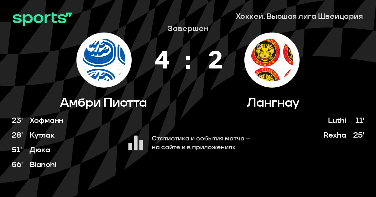 В прошедшем матче в рамках турнира Хоккей. Высшая лига Швейцария состоялась встреча команд Амбри Пиотта - Лангнау