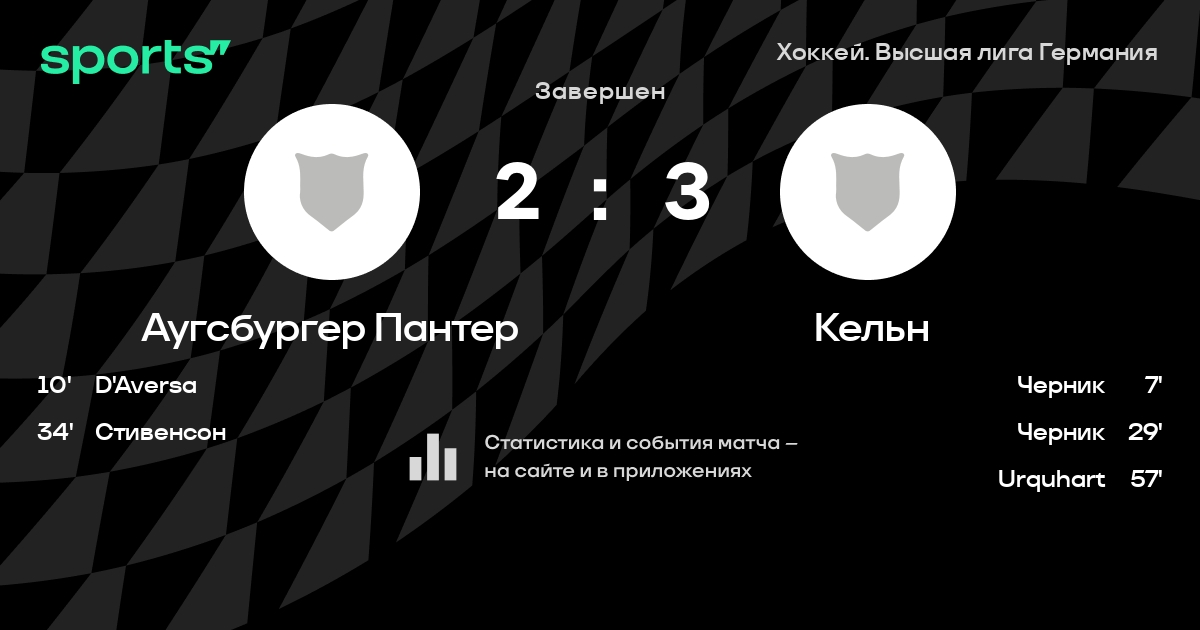 В прошедшем матче в рамках турнира Хоккей. Высшая лига Германия состоялась встреча команд Аугсбургер Пантер - Кельн