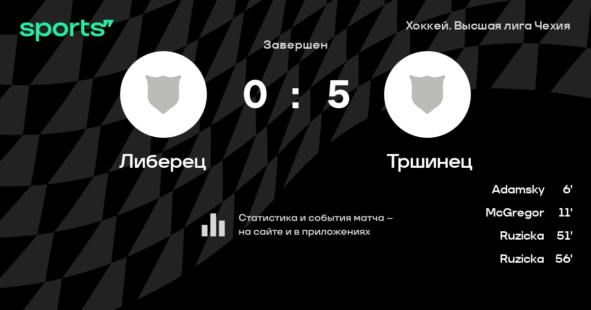 В прошедшем матче в рамках турнира Хоккей. Высшая лига Чехия состоялась встреча команд Либерец - Тршинец