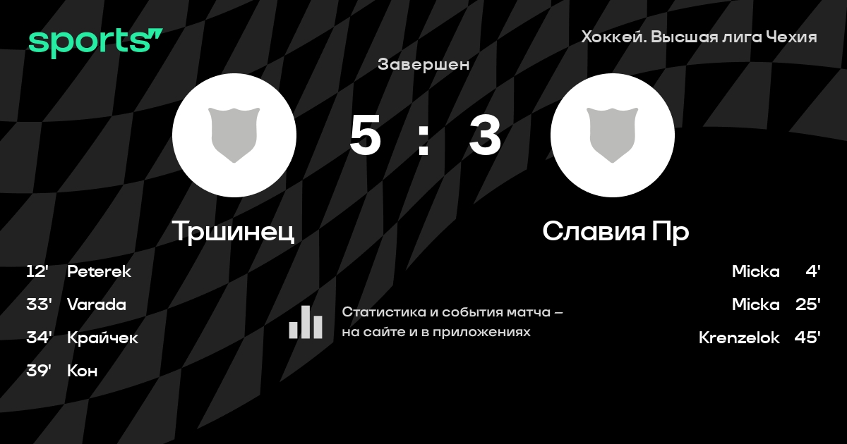 В прошедшем матче в рамках турнира Хоккей. Высшая лига Чехия состоялась встреча команд Тршинец - Славия Пр