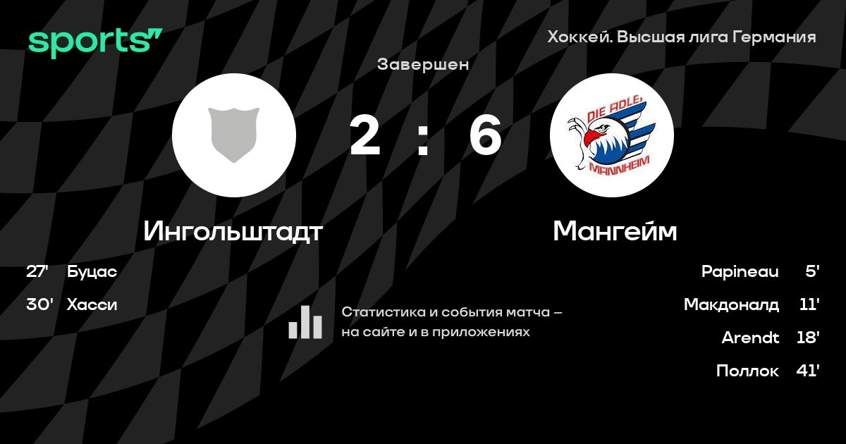 В прошедшем матче в рамках турнира Хоккей. Высшая лига Германия состоялась встреча команд Ингольштадт - Мангейм