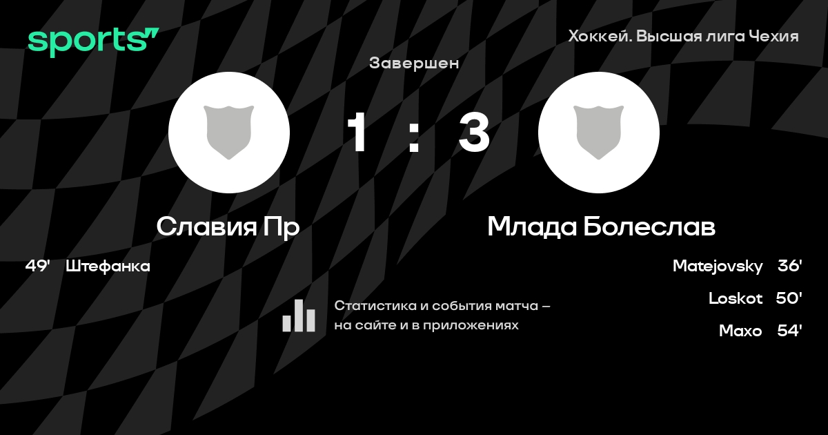 В прошедшем матче в рамках турнира Хоккей. Высшая лига Чехия состоялась встреча команд Славия Пр - Млада Болеслав