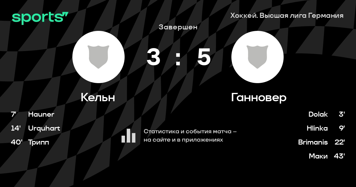 В прошедшем матче в рамках турнира Хоккей. Высшая лига Германия состоялась встреча команд Кельн - Ганновер