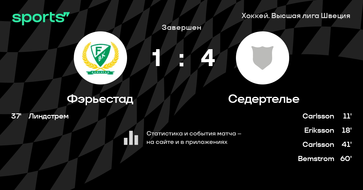 В прошедшем матче в рамках турнира Хоккей. Высшая лига Швеция состоялась встреча команд Фэрьестад - Седертелье