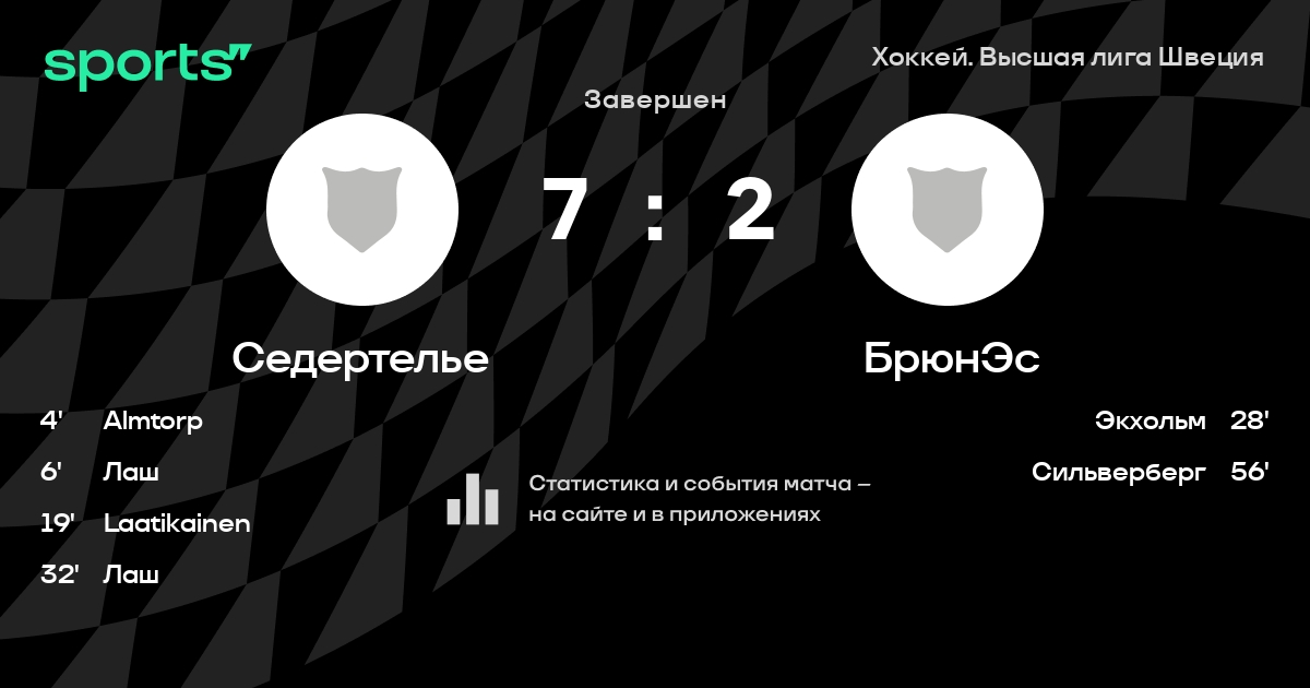 В прошедшем матче в рамках турнира Хоккей. Высшая лига Швеция состоялась встреча команд Седертелье - БрюнЭс