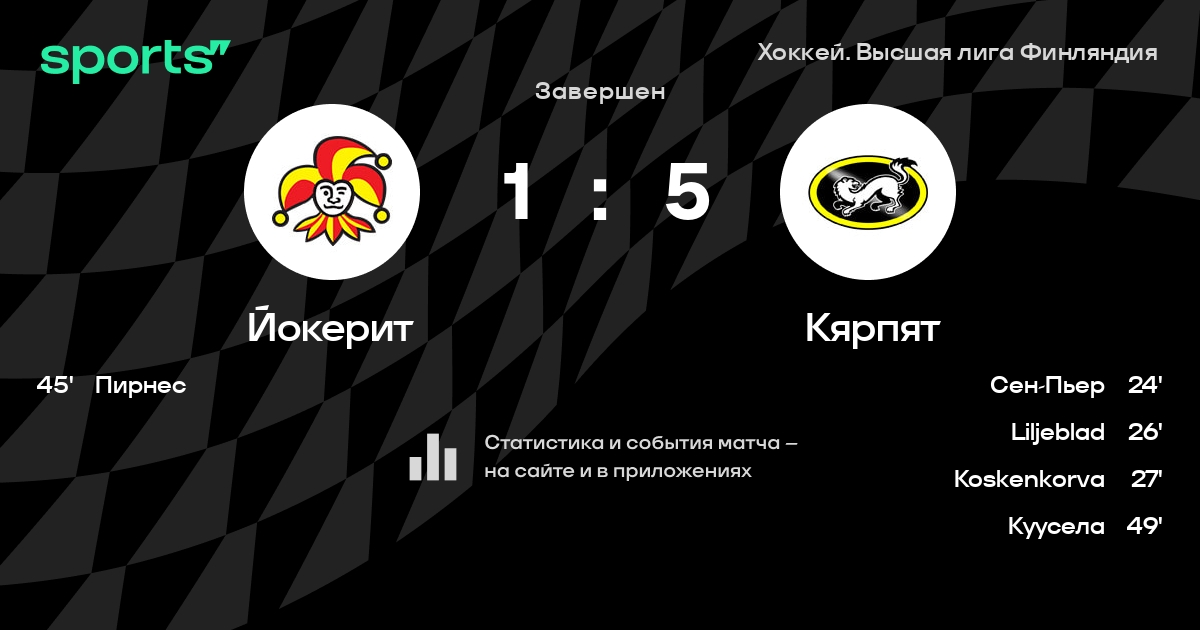 В прошедшем матче в рамках турнира Хоккей. Высшая лига Финляндия состоялась встреча команд Йокерит - Кярпят
