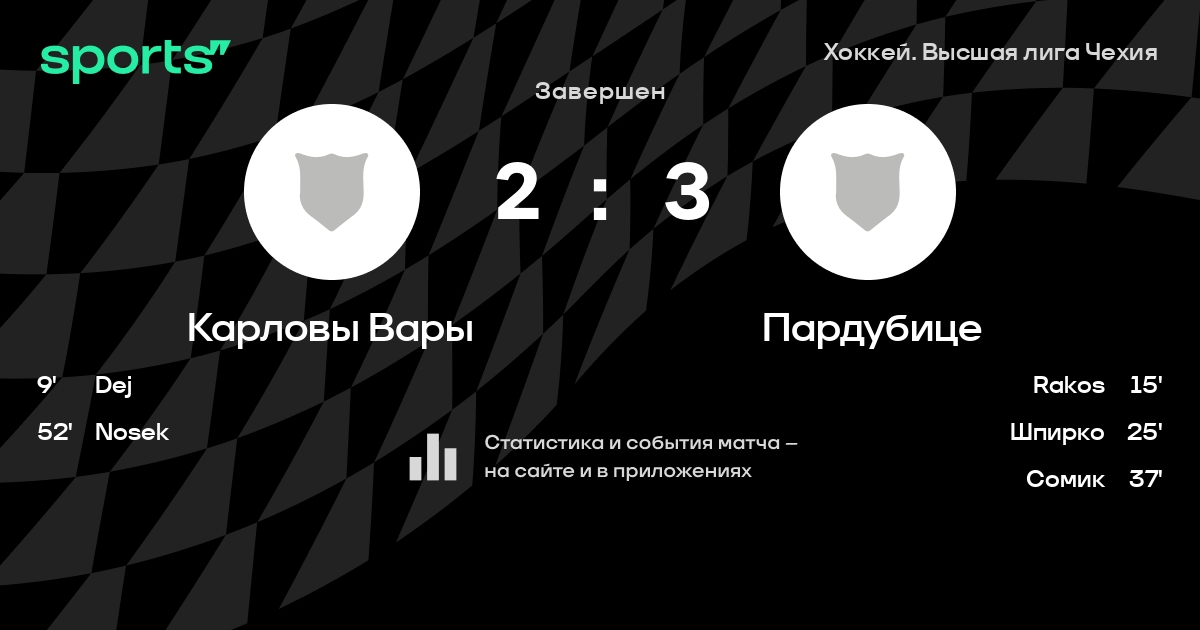 В прошедшем матче в рамках турнира Хоккей. Высшая лига Чехия состоялась встреча команд Карловы Вары - Пардубице