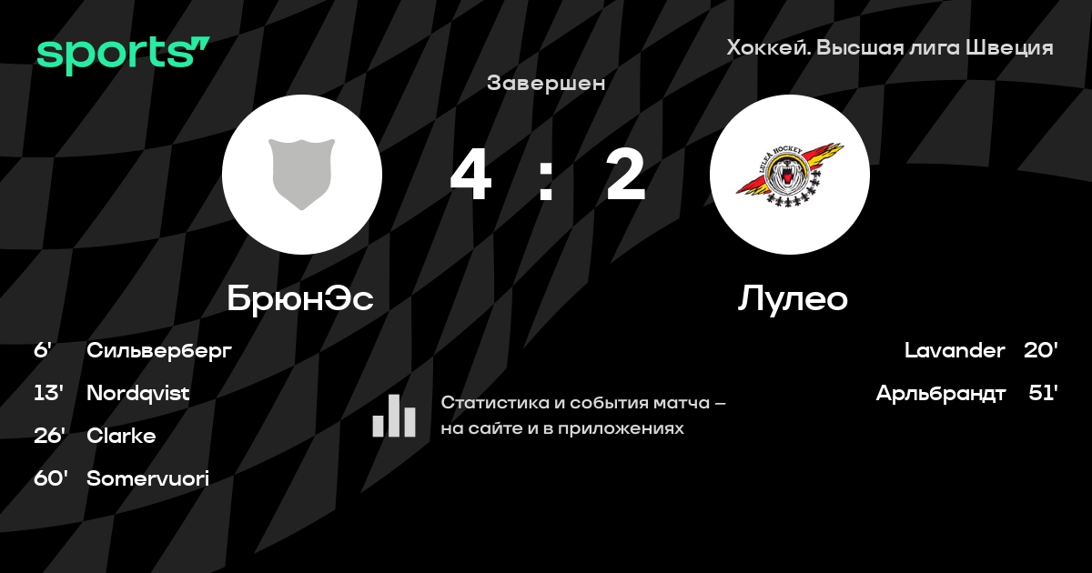 В прошедшем матче в рамках турнира Хоккей. Высшая лига Швеция состоялась встреча команд БрюнЭс - Лулео